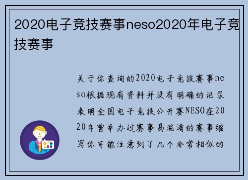 | 赛事要素 | 具体信息 | | :-- | :-- | | 赛事名称 | 2020 VR电子竞技国际大赛 (VRES) |Bb艾弗森&...